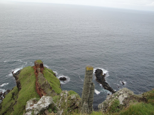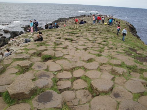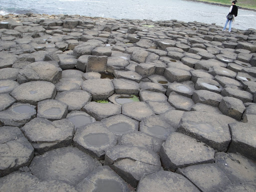 Well the odd rock formations is actually caused by intense volcanic activity like 50-60 million years ago, and liquidized basalt flowed over chalkbeds to form a lava plateau. as the lava cooled, contraction occurred. “Columns formed which is caused by how fast the lava cools. The tops of the columns form stepping stones that lead from the cliff foot and disappear under the sea. Most of the columns are hexagonal, although there are also some with four, five, seven and eight sides. The tallest are about 12 metres (36 ft) high, and the solidified lava in the cliffs is 28 metres thick in places.”