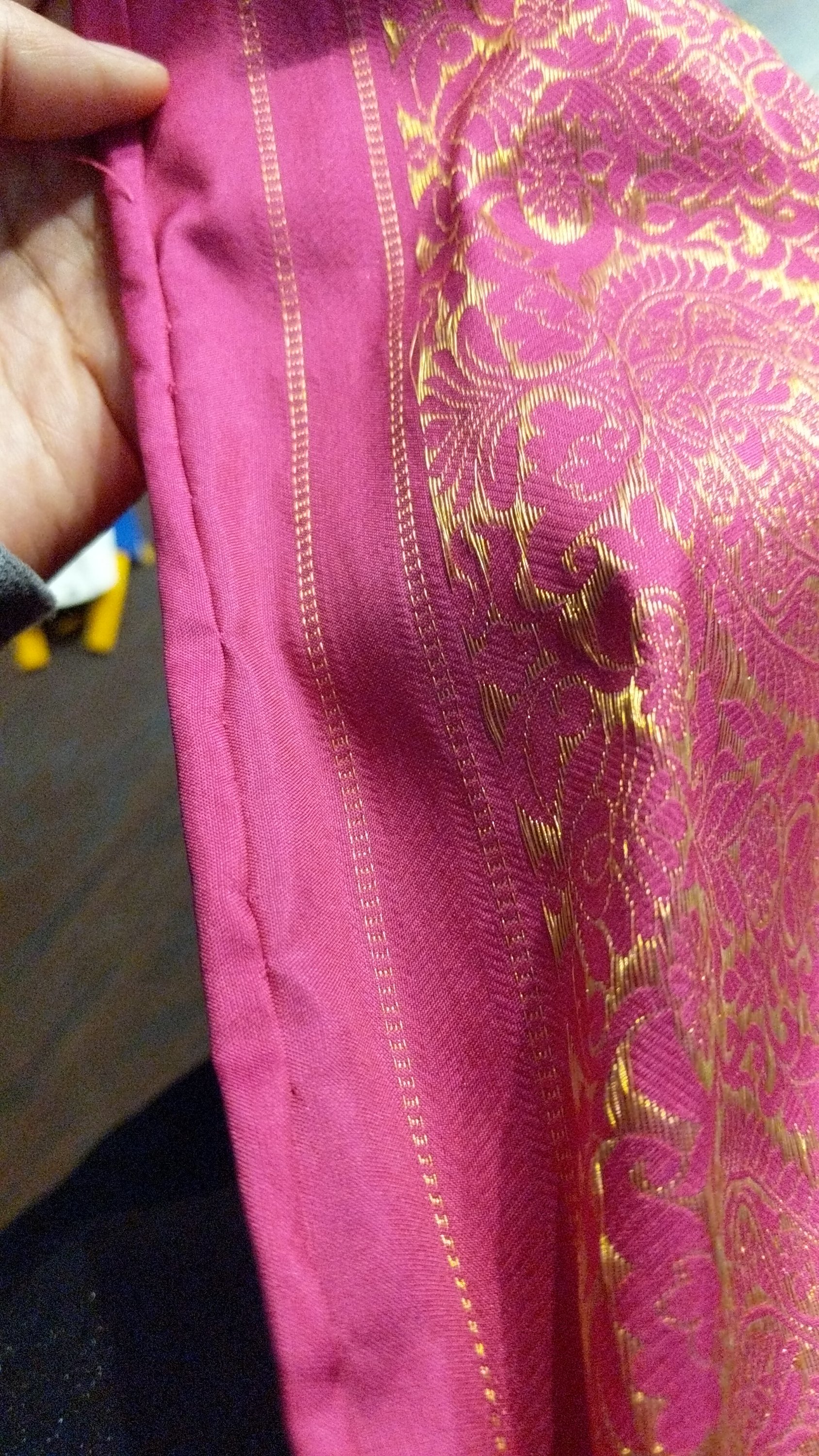 Can you wear your saree without a fall? If it’s a rush one day thing then maybe, but if your saree is made of silk or some other expensive material, then no, you must attach the fall before wear it. The fall is meant to give it some weight, it allows the pleats to be more distinct when you’ve got it worn, as well as protect the boarder from your shoes and the dirt from the floor.